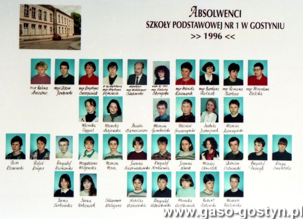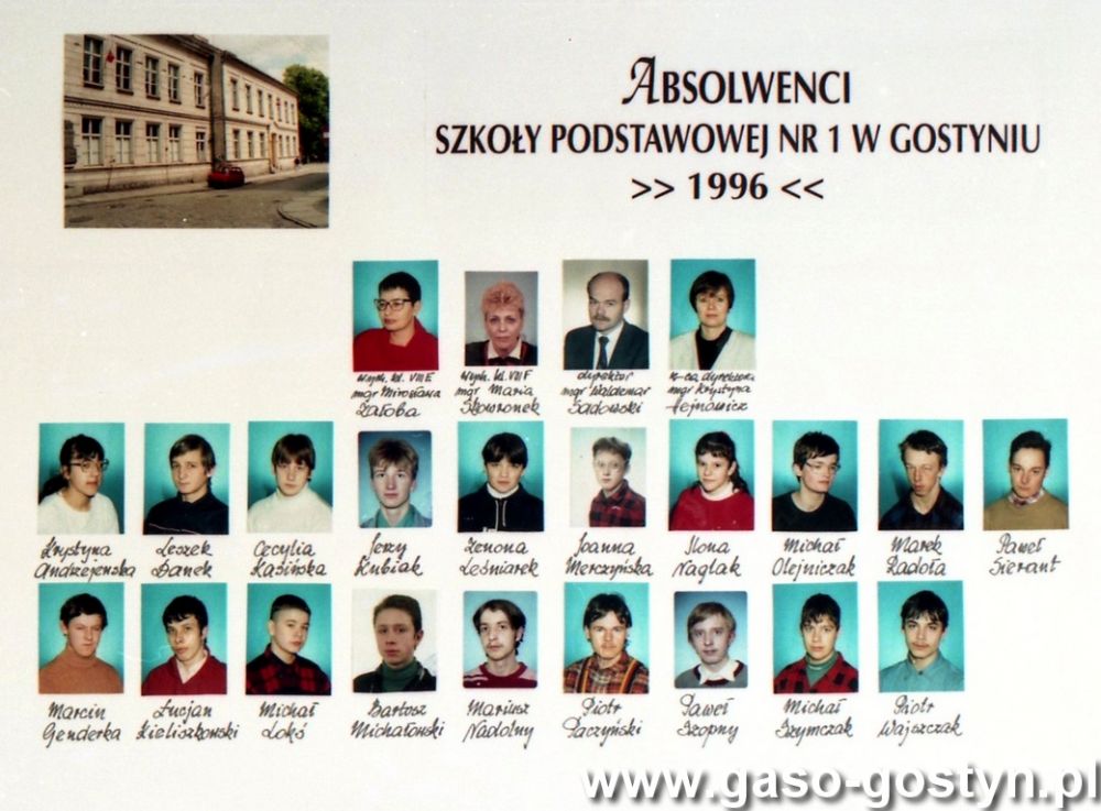 Absolwenci Szkoły Podstawowej nr 1 w Gostyniu z 1996 roku.