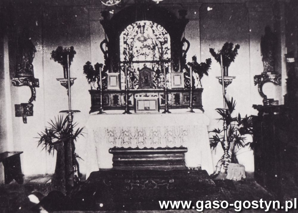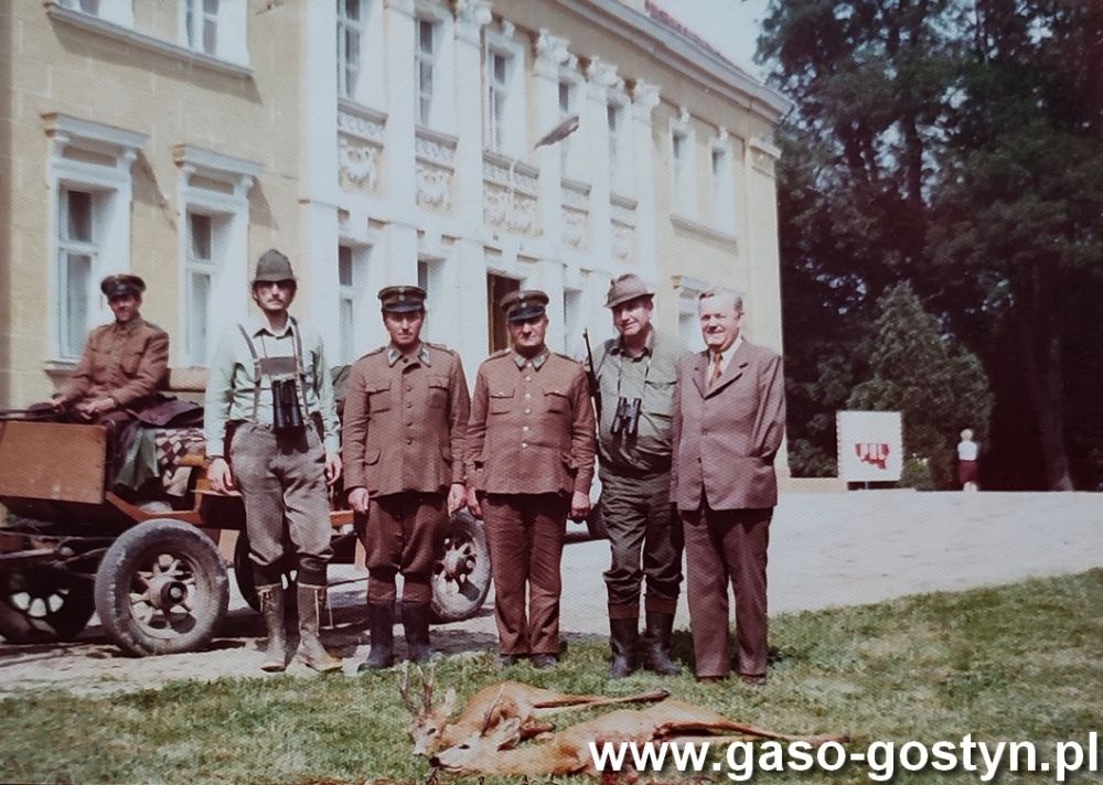 Archiwalne zdjęcia z Goli: Józef Kołodziejczak - kierownik gorzelni w majątku Edwarda Potworowskiego, wnętrze kaplicy dworskiej przed przebudową dokonaną przez Edwarda i Teklę Potworowskich, myśliwi z RFN w towarzystwie strażników i dyrektora Kombinatu PGR Gola Feliksa Baszyńskiego, staw przy pałacu.