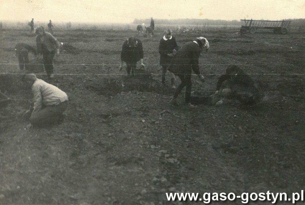 Zbiórka ziemniaków przez uczniów Szkoły Podstawowej w Bodzewie na polu miejscowego PGR-u (zdjęcia z września 1969 roku).